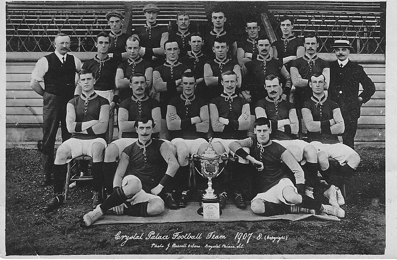 Peter Hurn (Palace photo collector) and Chris Winter (Palace commentator and author) are developing an idea of collecting and reproducing Palace team photos dating back to 1905, either as a book or as a set of high quality postcards. Ian King and Ian Weller have been a great help so far, but we are appealing for any other collectors out there who may have any original team photos or postcards from any era, in order to fill in some of the gaps. If you can help, please get in touch on here, or by PM if you prefer. Here's a 1907-8 postcard which might whet the appetite