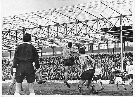 Second photo.... 22nd Feb 69. Palace v Hull. Visiting keeper Ian McKechnie clears as Tony Taylor stands poised for action. Hard to imagine that nowadays a full crowd would be allowed to stand underneath a half-built stand. Edited by PalacePhotoMan (17 Jul 2014 5.15pm)