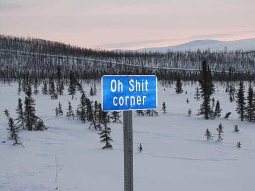 An official road signage on one of the trickiest parts of the Dalton Highway, Alaska. It's a stretch of road the Palace juggernaut has visited and invariably will encounter again sometime.