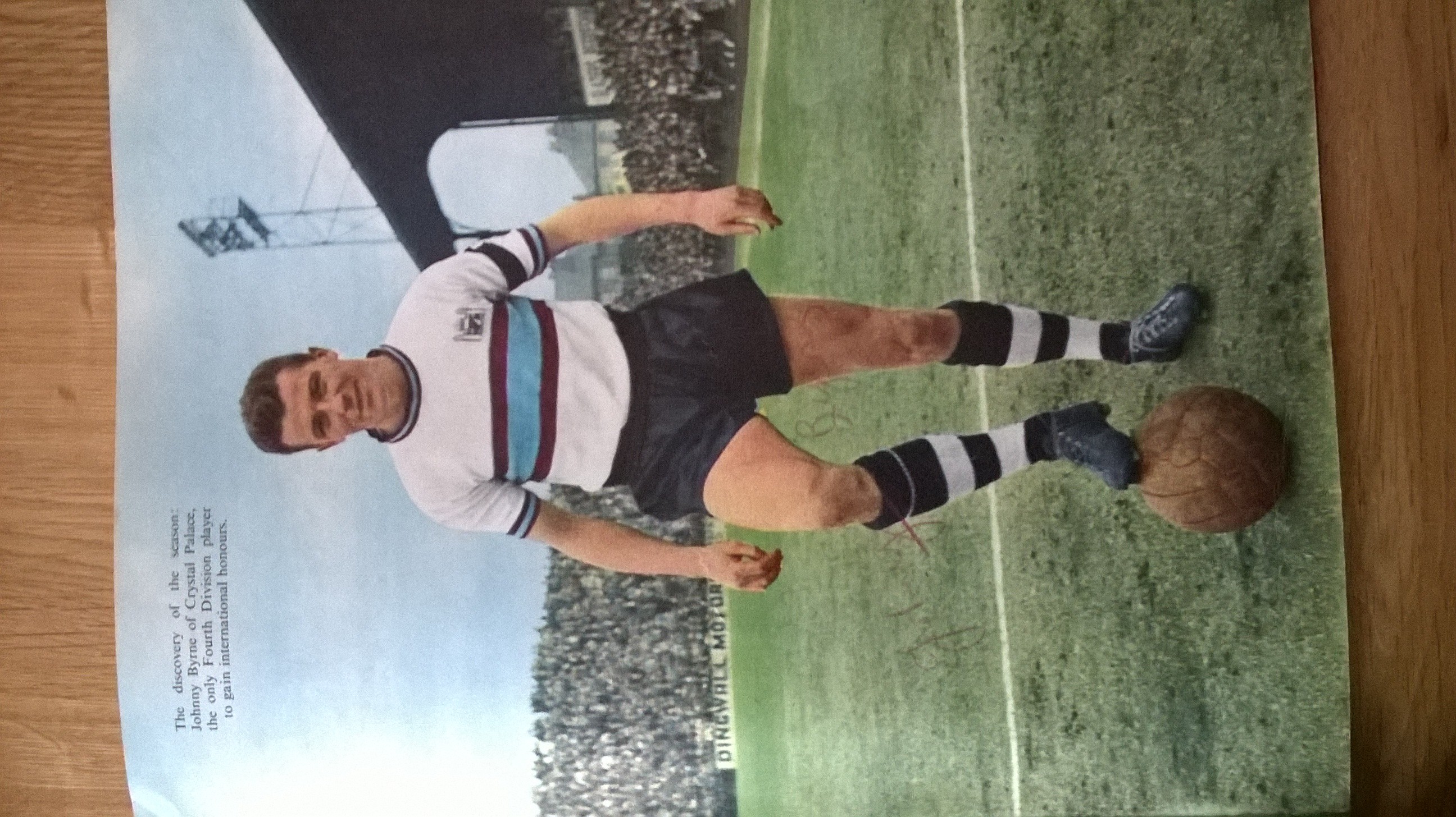 Johnny , was in a class of his own, just like Wilf,Yannick, are today..what a player..nobody could touch him, unbelievable for the day, as don't forget the ball was leather, and a damn sight heavier, more so when wet.. which was often.. the boots were like 'diving boots', and heavy,but Johnny performed 'magic'..I for one think Johnny Byrne deserves to be remembered in a big way at Selhurst..so how about it Steve?