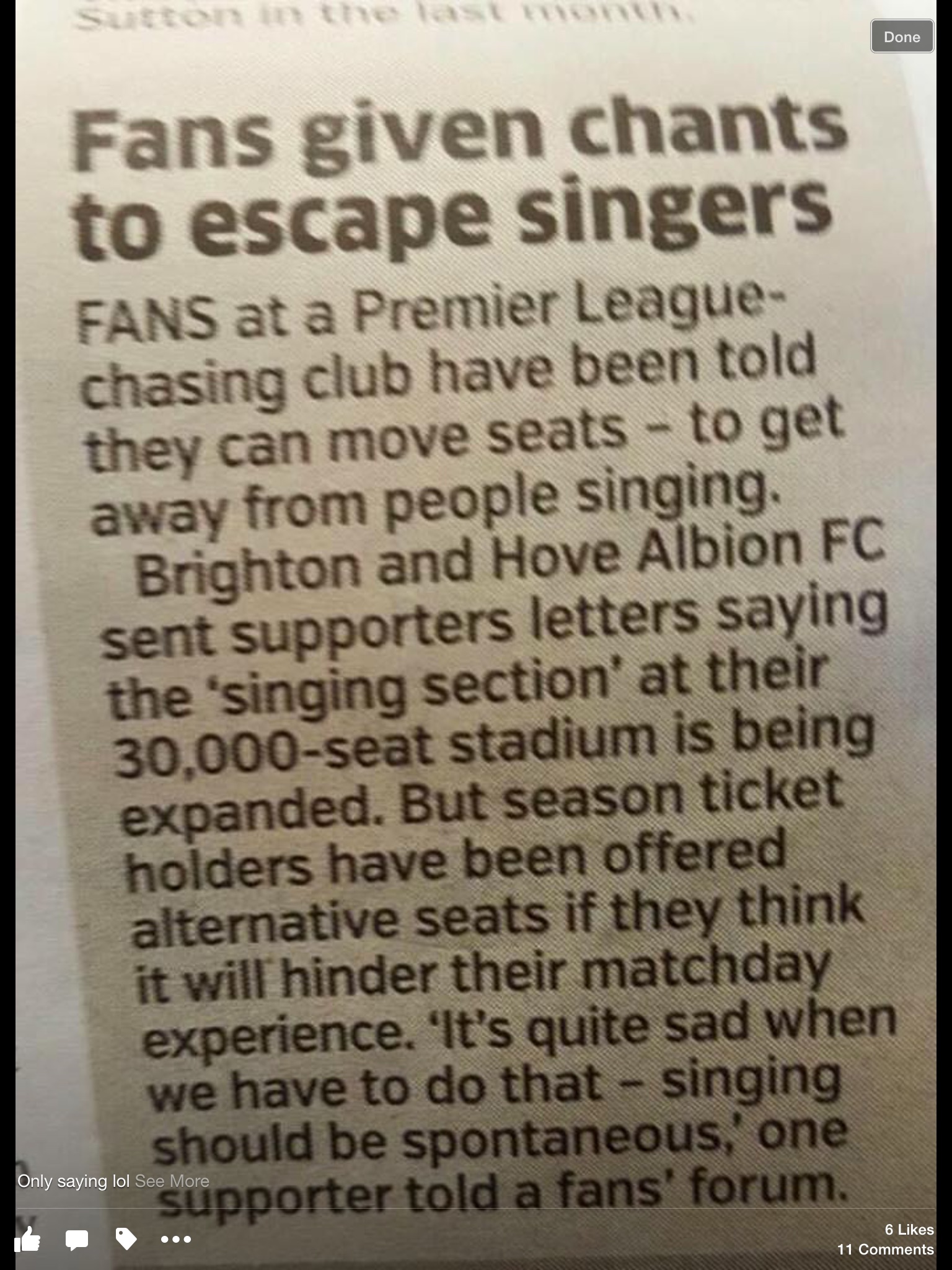 I had to advise a Brighton fan the correct lyrics to an anti-Palace song at the weekend after his incorrect attempt. They really do need this much help.