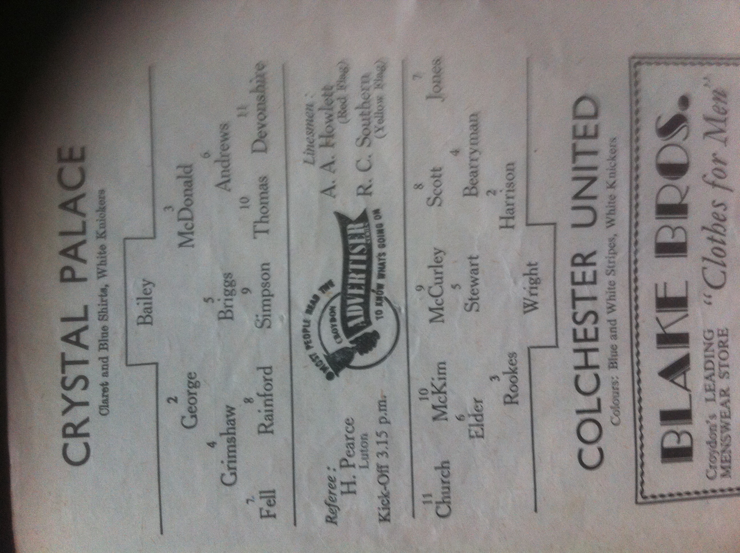 I will have a look also for Palace programmes spanning the 52/55 seasons......i know they have very limited informatin on players inside probably just the teams and a few adverts ....as that is what the programmes were like in those days ....again thanks for posting those pictures......