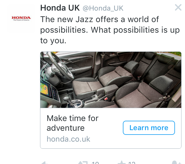Saw this, caption "The new Jazz offers a world of possibilities. What possibilities is up to you" The seats are fully reclined so wonder what they could be suggesting