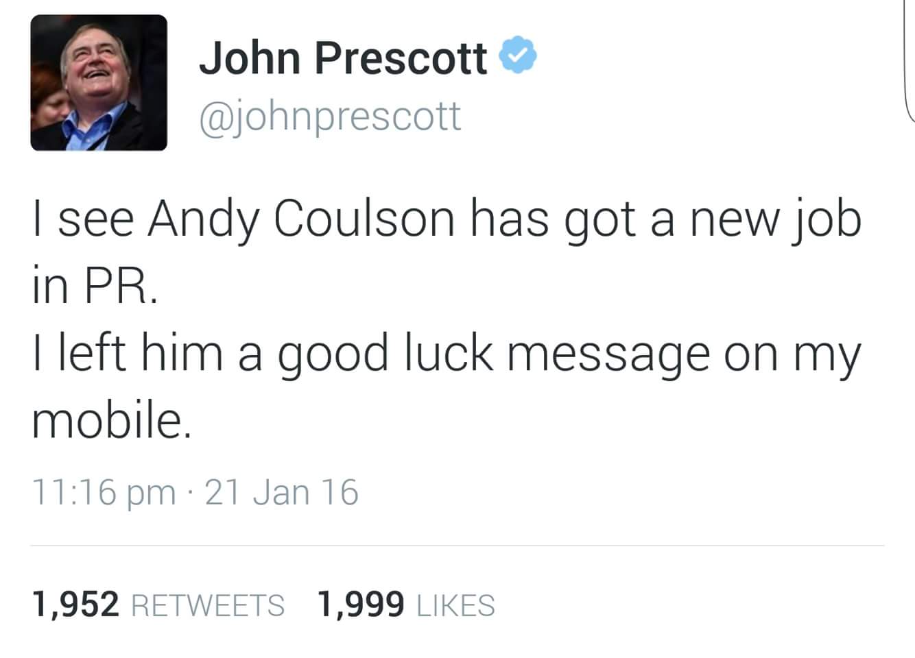 Prescott must be nearly 80 now; he said on a league of their own that he had fallen over.