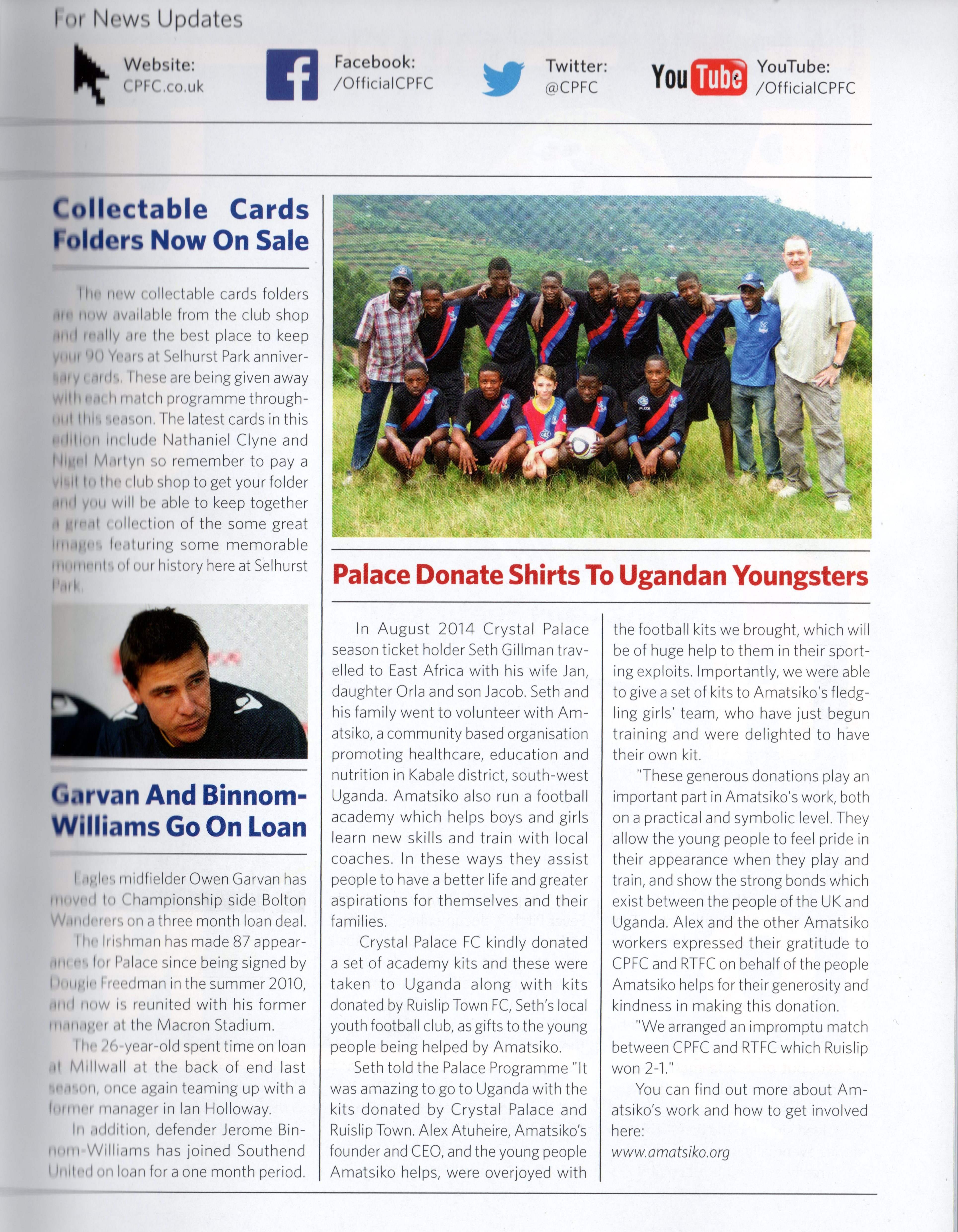 Because of the club's donation there is now a group of Ugandan Palace fans in Kabale who gather at a local bar to watch our matches and keep in touch with me to chat about all things Palace-related!