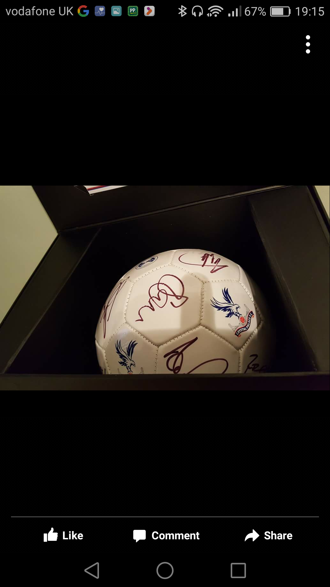 A local school to me in Blackfen (Sherwood Park Primary School, Sidcup) is having their Christmas fete this week and are auctioning a signed CPFC football. Bids over £100 can be emailed to the address below by Friday evening at the latest.