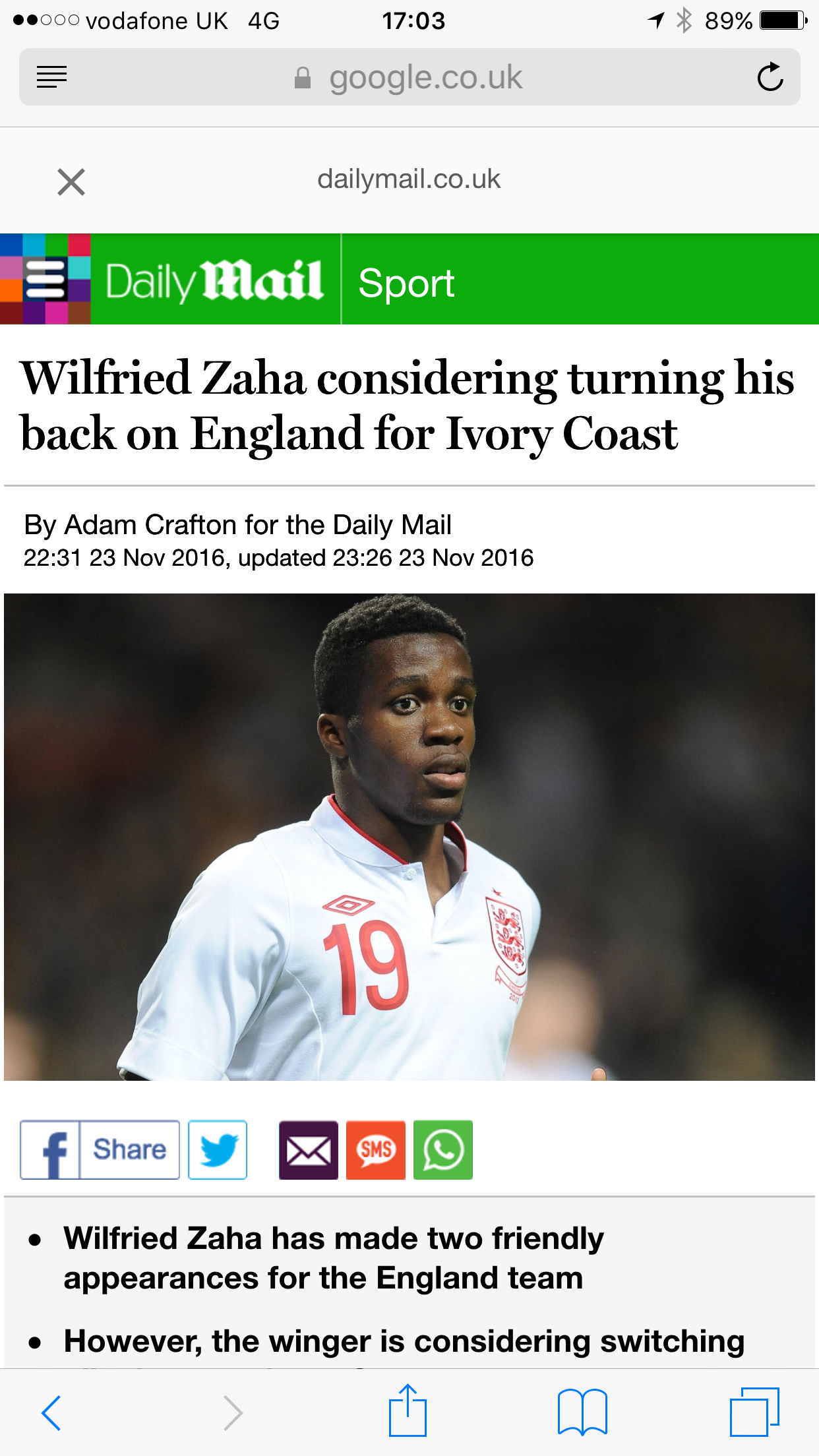 I don't blame him for wanting to play for Ivory Coast. He must look at the England squad and think Lingard? Townsend? If he can't get into a squad that contains them he knows that England is a lost cause for him. There is not another English player that can do what he can. What a waste to let him drift away.