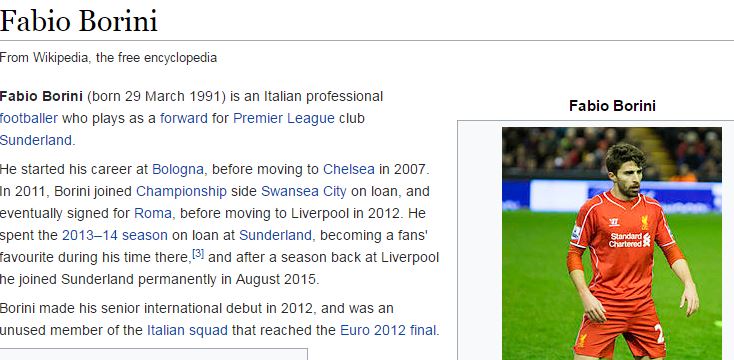 My contact and I then had a minor disagreement about whether or not Borini made his senior international debut in 2012, and was an unused member of the Italian squad that reached the Euro 2012 final.As it happens, it turns out that my contact's information was bang on the money and he truely was a part of the aforementioned Italian squad.