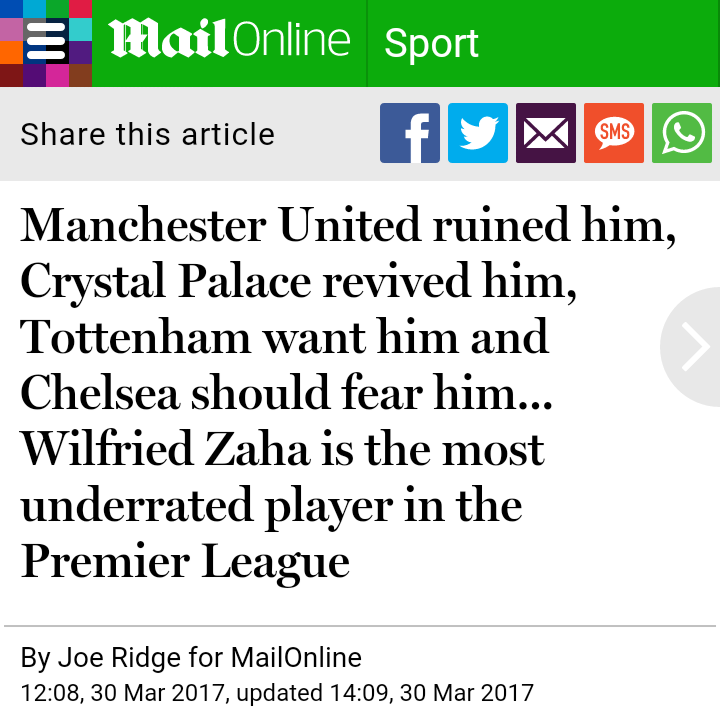 Probably the first genuinely fair assessment of the wonderful Wilf in any paper other than the Gaurdian who seem to rate Zaha. I especially agree with the bit about moronic pundits making a decision on Wilf based on rumours and 6 tough months at Man U under a crap manager aged 20. This paper is a pile of w*nk but this is a good article.