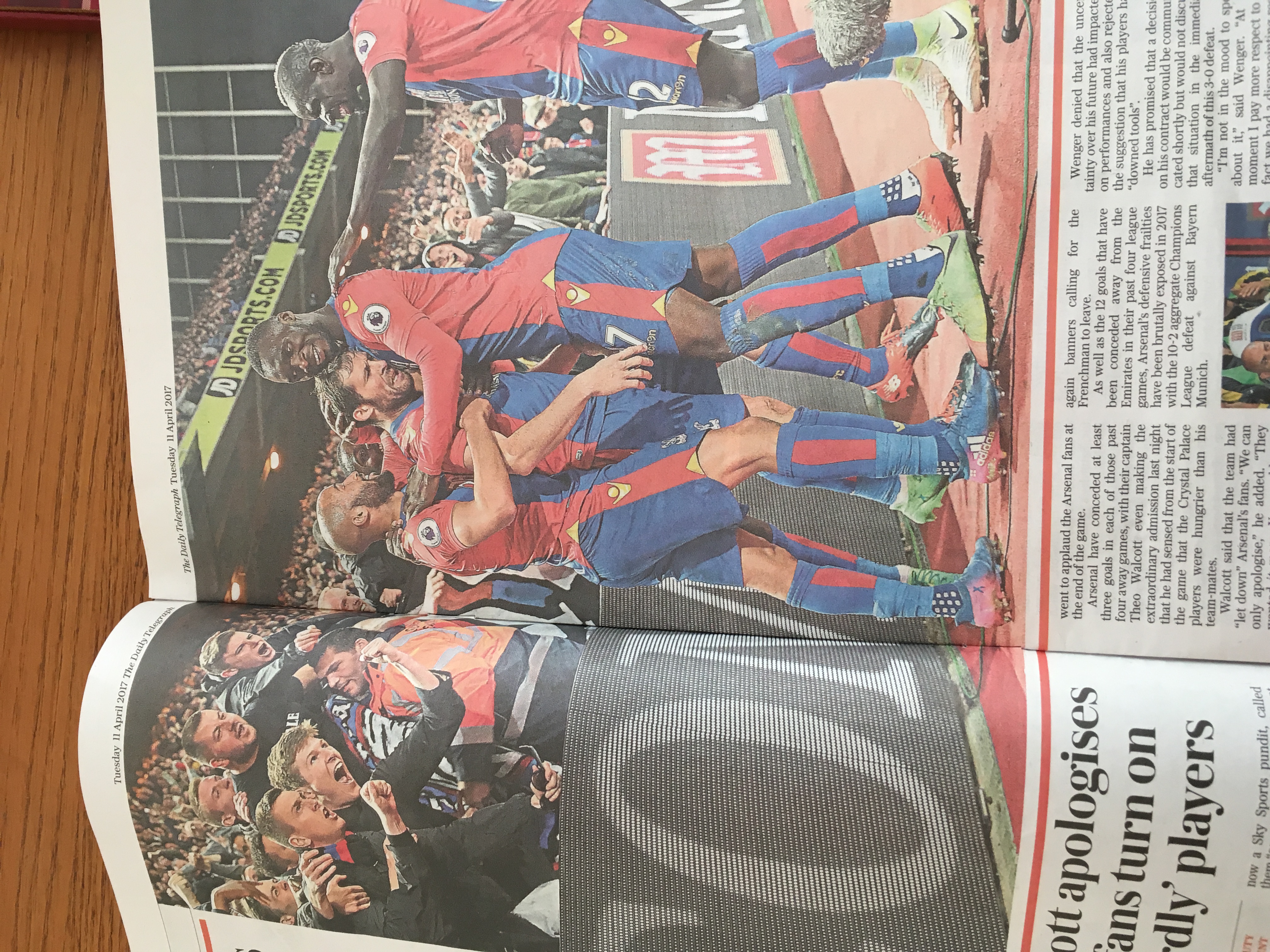 Just stumbled upon this picture of the HF celebrating with the team after Cabaye's goal in the telegraph sports section. Thought I'd share. If I was a face in that crowd, I'd want a copy of it!