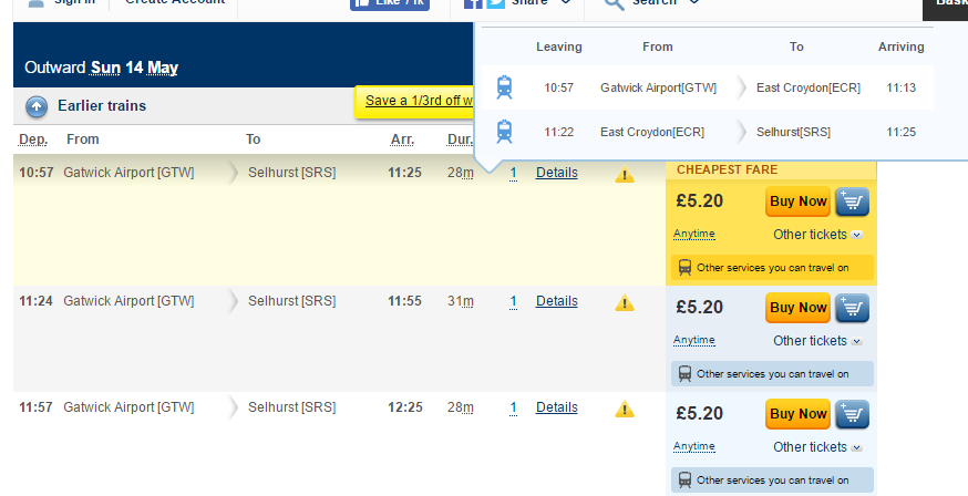 Good Luck. One of these may help Search result - Gatwick to Selhurst (may not come up) Base Website (so you can go forward yourself (Southern Improvement works) Good luck - you may wish (before they tell you to turn off mobiles / laptops wish to show a flight attendant that an early arrival will be very useful. COYP