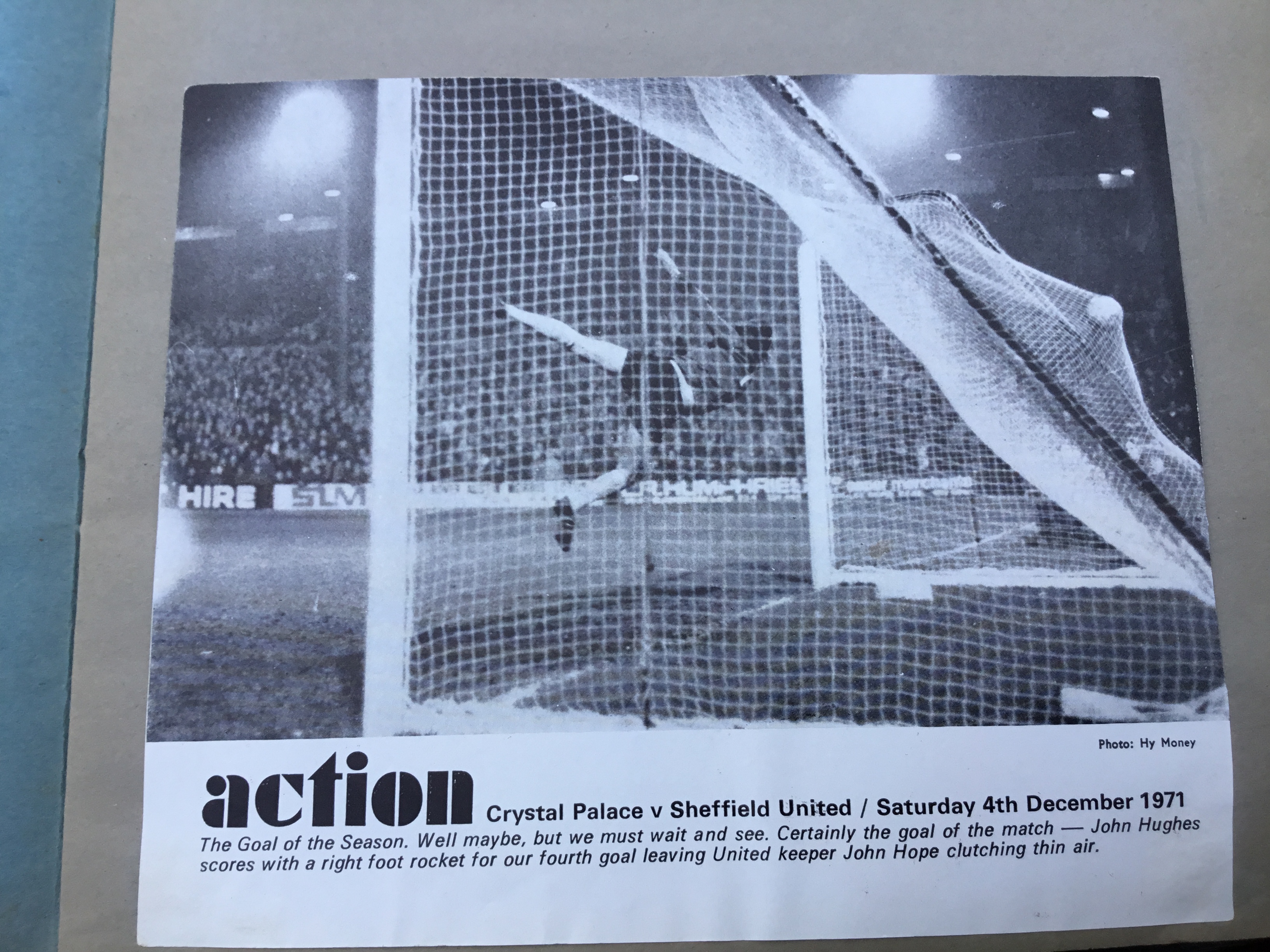 Just found some old scrapbooks from 1969-74. Found some fantastic photos taken by Hy Money. Brilliant palace photographer. Found a lovely pic of the john Hughes 30 yarder against Sheffield united in the 5-1 win. Anyone else emember her?