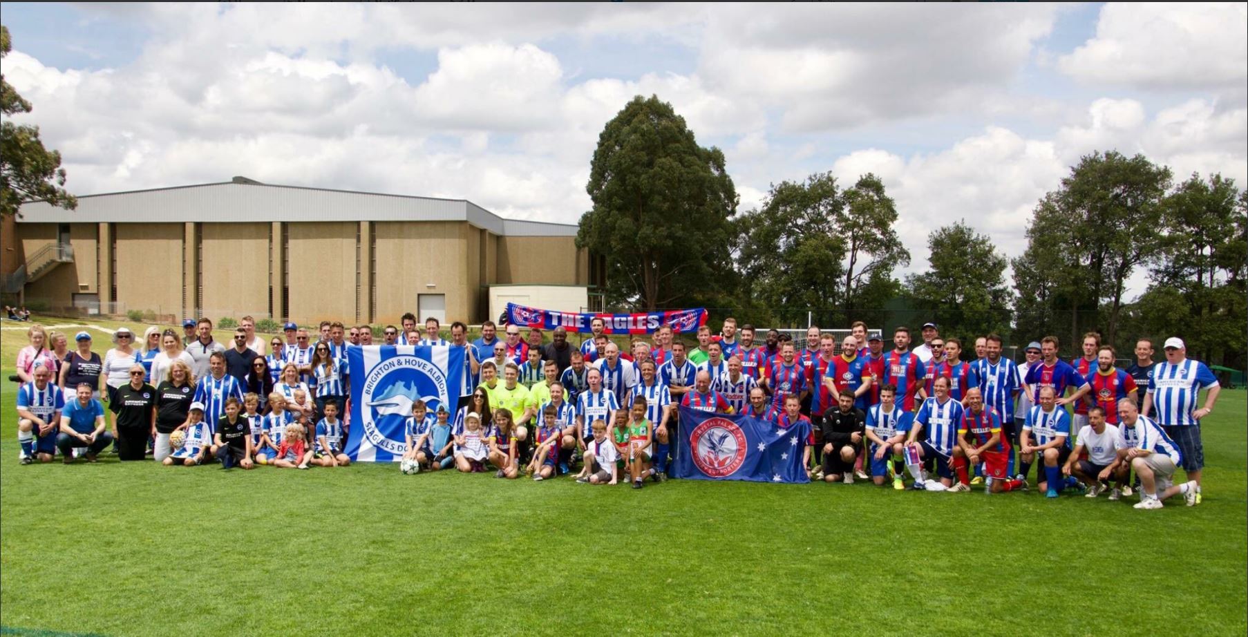 Saturday 28th October 2017. Kick off 11:00 at the Kings School in Parramatta. We have less than two weeks to go till our annual supporters match where we take on Brighton. Lots of new talented players have been added to our ranks this year to go along with the seasoned veterans so let's hope we can improve on our 0 wins/3 losses/1 draw record vs. them (plus their ex-pro ringers) this year. Attached is a pic from last year. We would love to see more Red & Blue shirts in this year's! This year a film crew from Optus Sports will be attending and getting footage for a feature of the game to go on their network. For those back home, Optus Sports is the channel with exclusive rights to the PL over here. for players, for supporters which includes a BBQ, beers and raffle following the match. Later that evening we will be meeting up at the Palace Hotel on George Street in Sydney hopefully to celebrate our first victory against them and watch Palace vs West Ham (kick off 01:00 Sunday morning). Any interested players or spectators are all welcome so please get in touch either by replying here or PM, or by visiting the Facebook page linked below. Join our Facebook page for most up to date details of events and meet ups for Palace fans in Sydney: [Link] Edited by CPFC Syd (15 Oct 2017 5.28am)