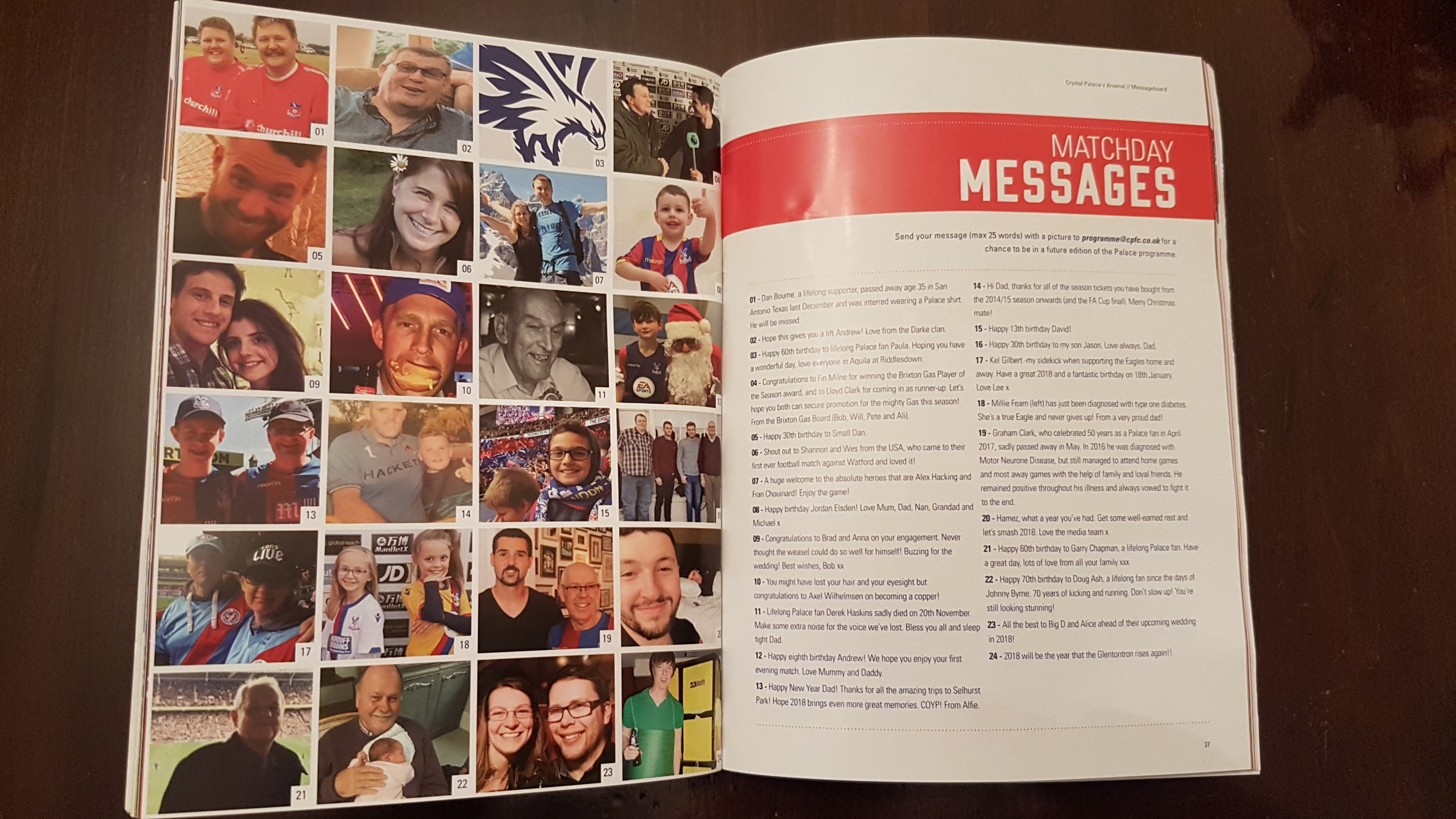My daughter was in the programme for the arsenal game under the messages section. Does anyone have a copy they would sell me or post a screenshot if poss?