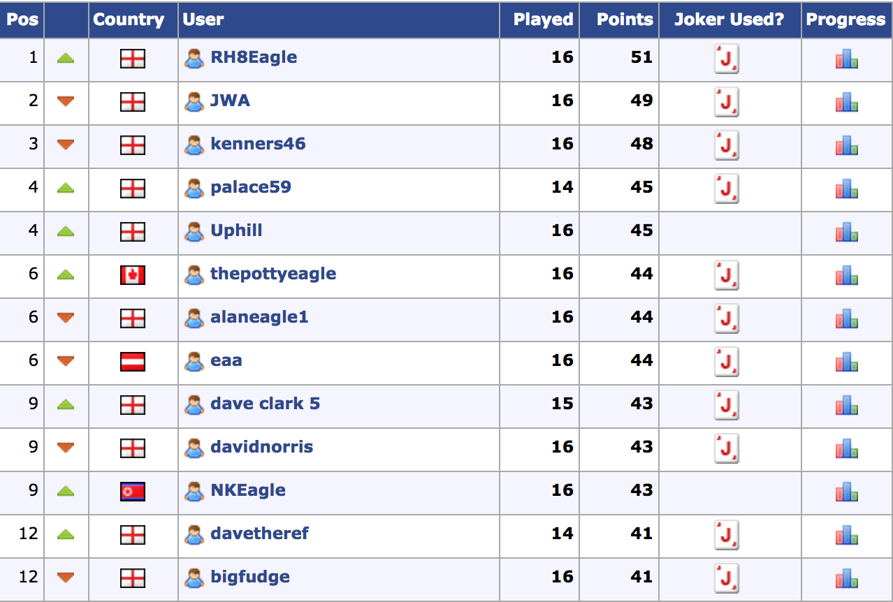 You are here: Home > Message Board > Palace Talk > Prediction League winner - RH8Eagle