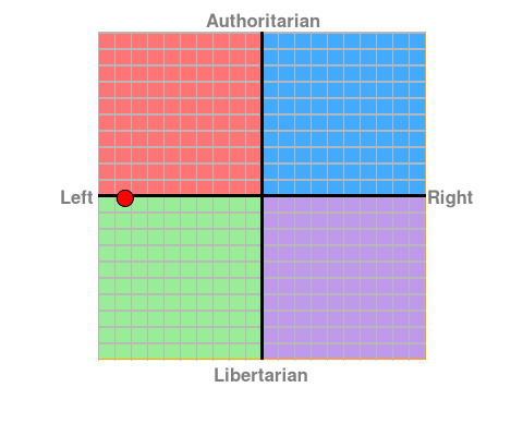No idea what this makes me...a lovable lefty I suspect. 'Your Political Compass Edited by johnno42000 (24 Jun 2018 1.18am) I think we can safety say that's far left....though not authoritarian left.