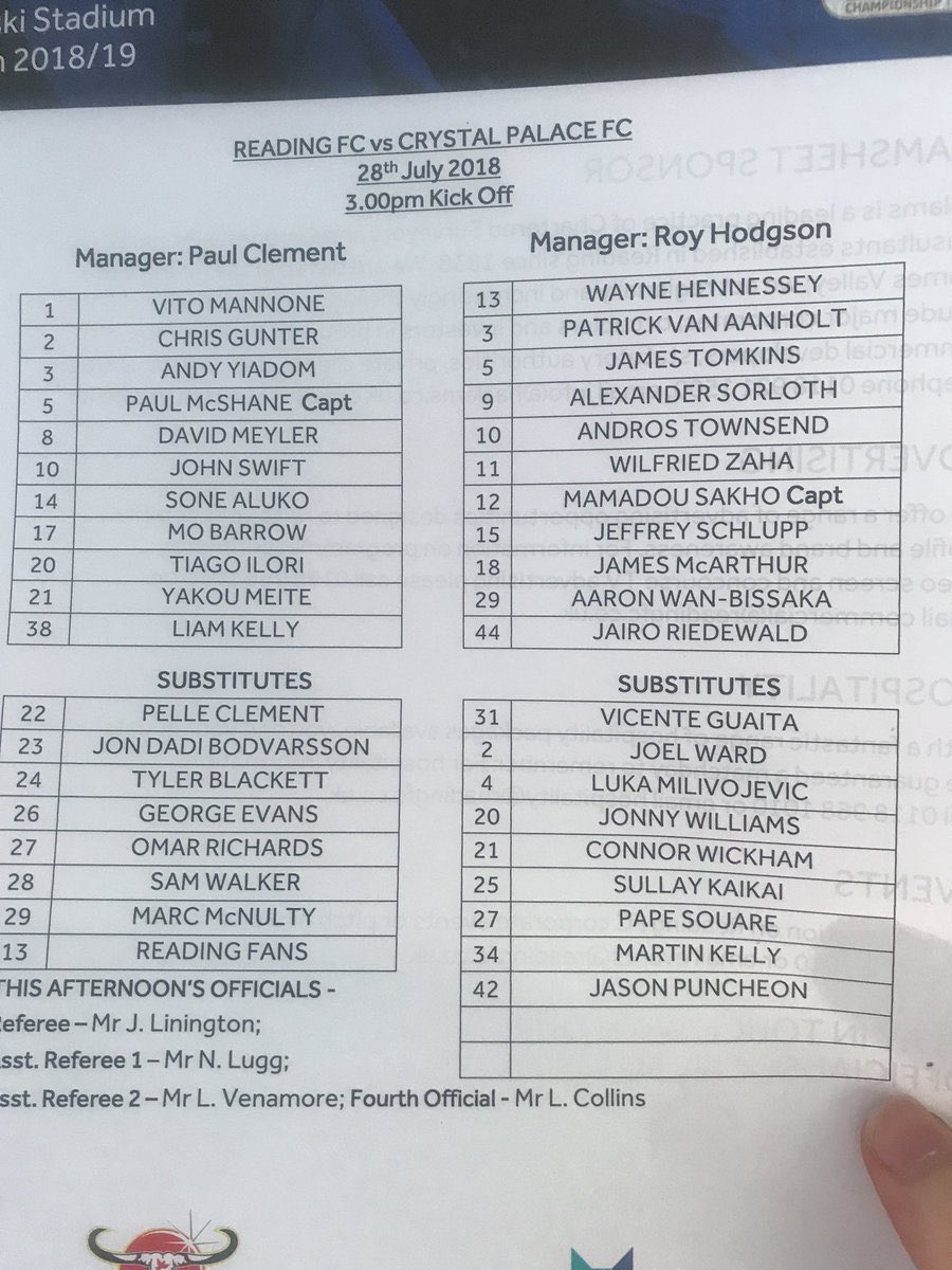 Connor Wickham on the bench. (Soz. Just noticed that someone else has commented on this) Edited by YT (28 Jul 2018 3.02pm)