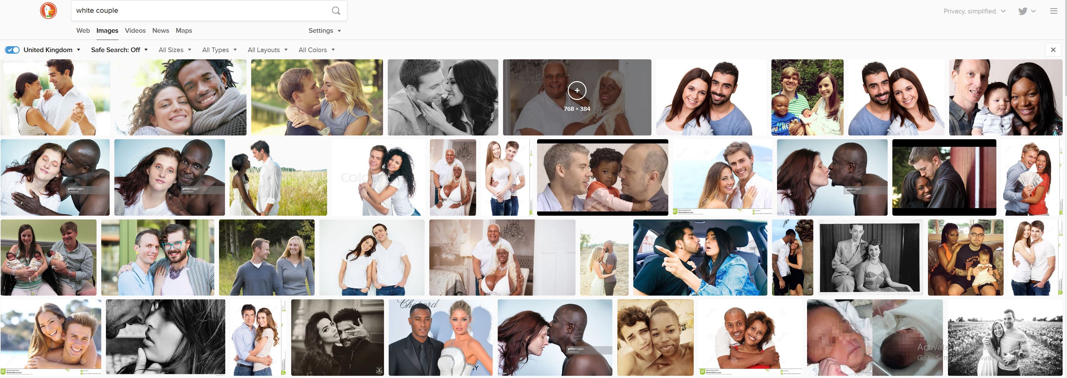 Now look at what you get when you put 'White Couple' into a search result using the Google algorithm.