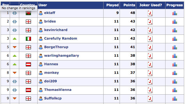 Despite picking up no points over the last 4 games, I find that I have won the league for the first period of the season.