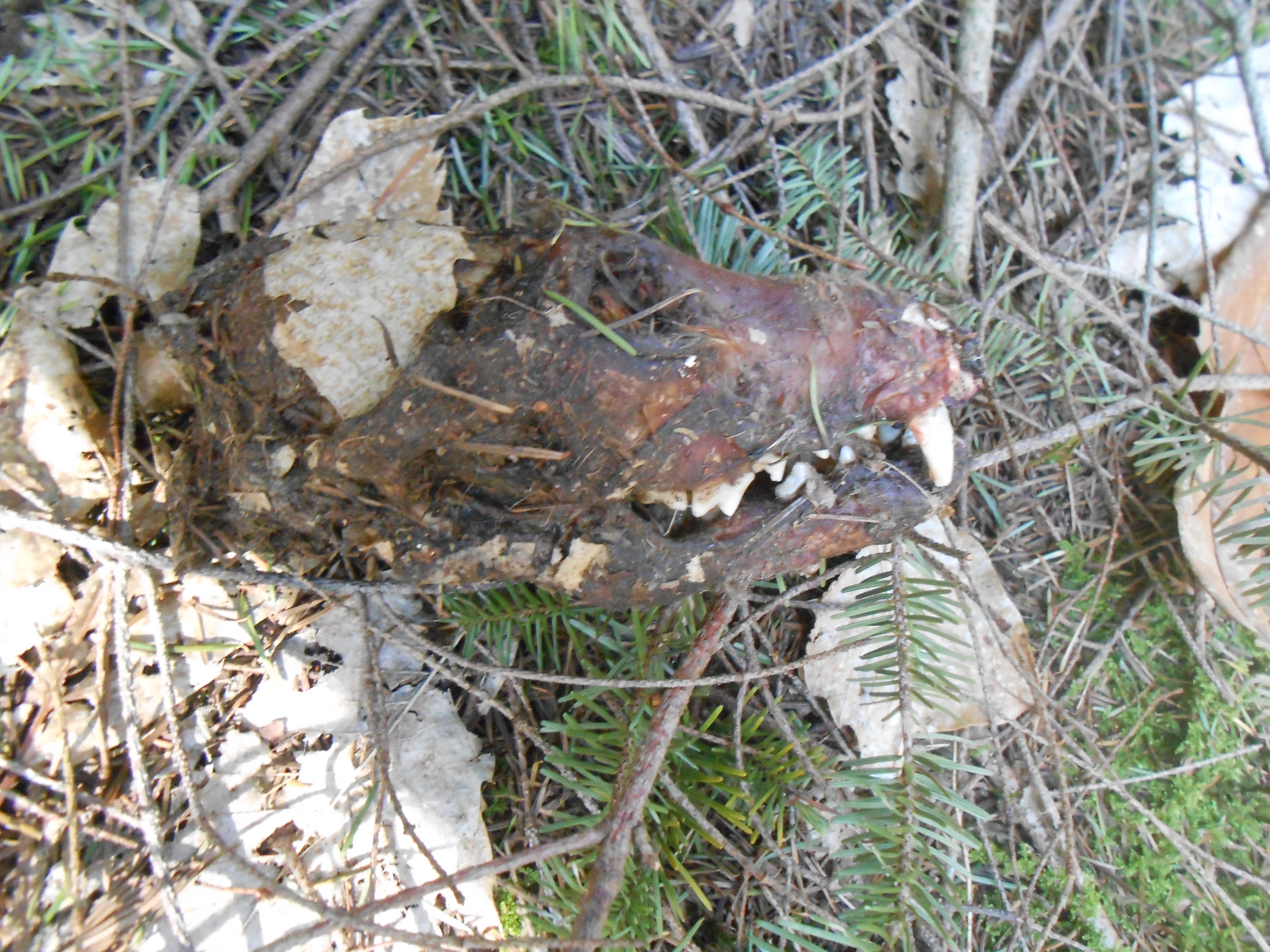 I am walking through the woods on my own this morning, when I see the head of an animal. (photo). It was the size of a medium paint tin.