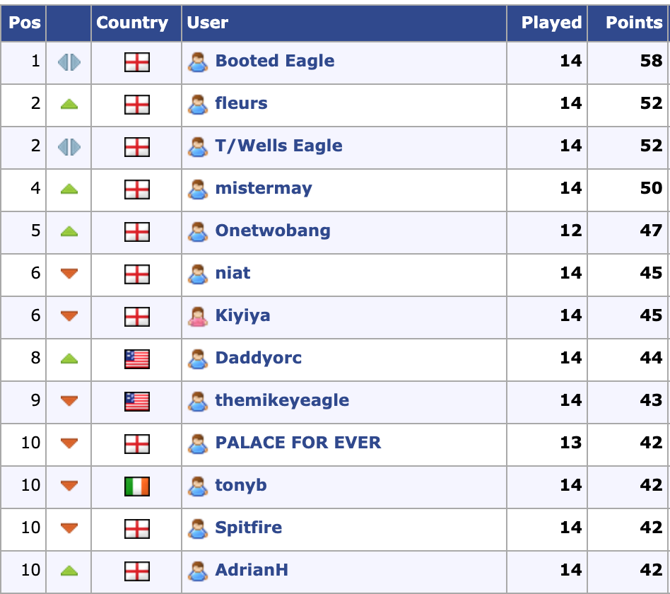 Our last and final prediction league winner of the season was Booted Eagle with 58 points - congrats!