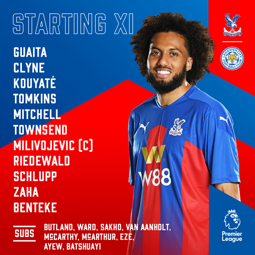 Palace: Guaita, Mitchell, Tomkins, Kouyaté, Clyne, Milivojevic, Riedewald, Schlupp, Townsend, Zaha, Benteke.