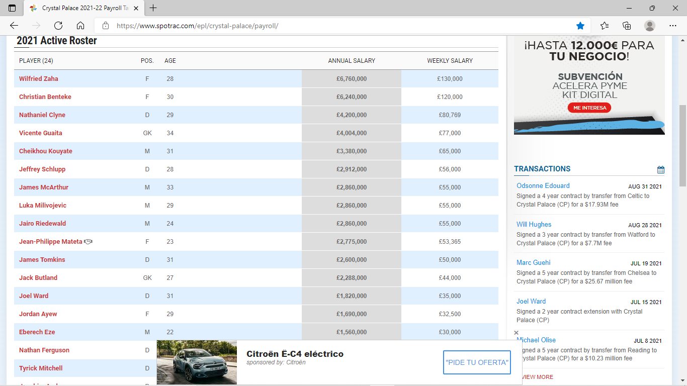 This is what Spotrac, an US based company claims are the current salarys, they say the get their info from the agents (obviously not for free) true or not i dont know