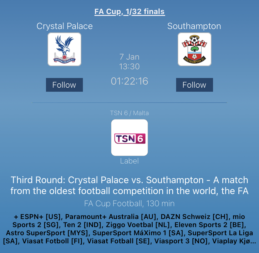 You are here: Home > Message Board > Palace Talk > Todays game on international channels / iptv