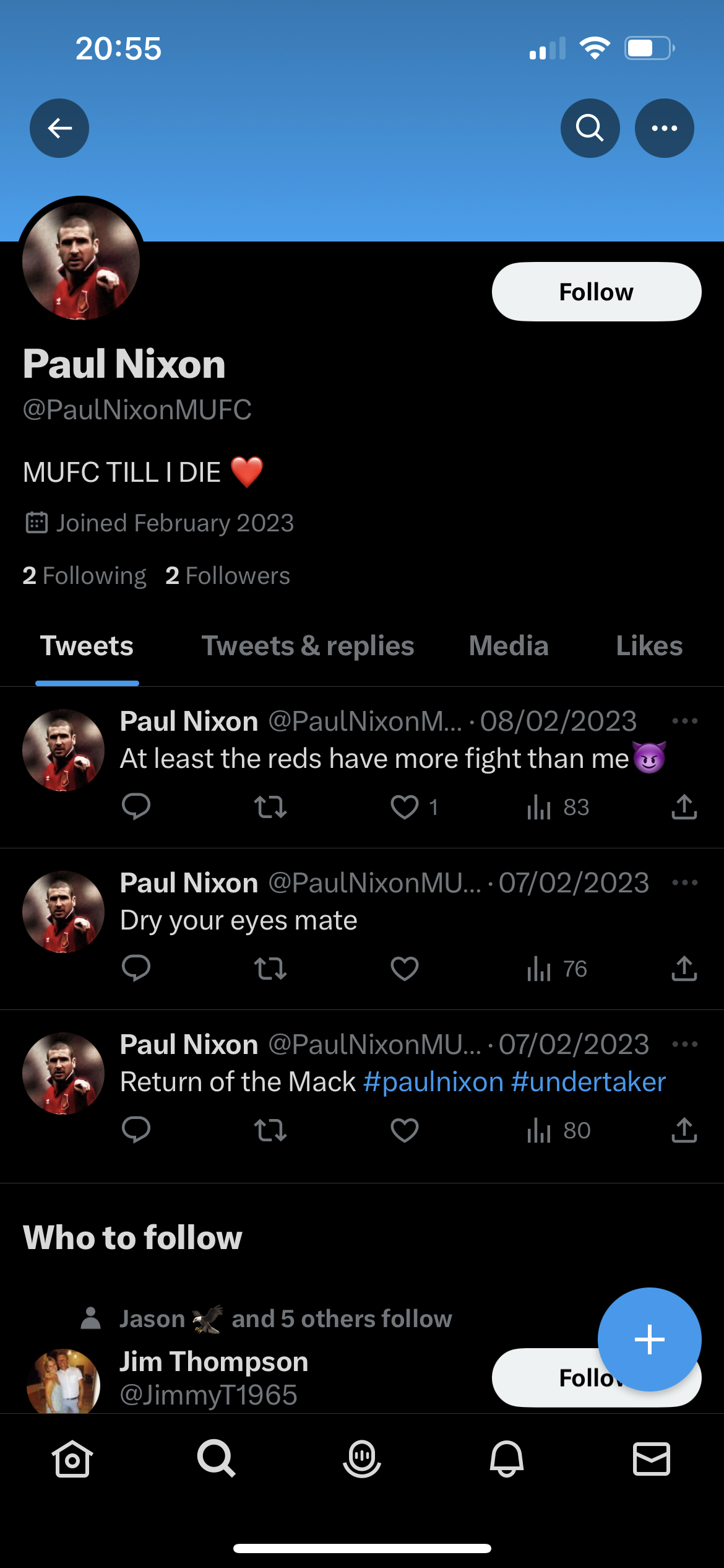 Paul Nixon was a Palace fan who was killed by Man Utd 'supporters before the Villa Park Cup Semi-Final - all over the Cantona kick at Matthew Simmons. This is pretty sick by someone impersonating him on Twitter That part I completely missed was concentrating on messages. Yes awful but equally I can only imagine just how pathetic somebody's life must be to do this. It's a quick way for them to get some attention where they have completely failed to get it elsewhere in life. Hopefully reported and removed soon.