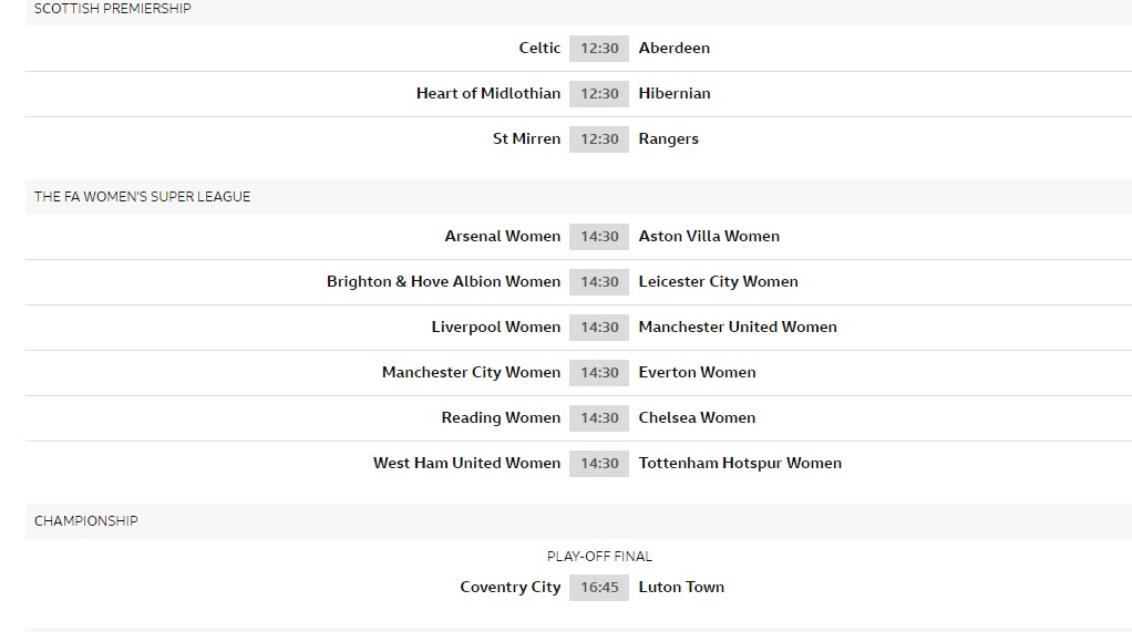 On the BBC Sport website they put the Premier League fixtures first. Next is the Women's Super League and then the Championship. The BBC obviously think the WSL is a bigger and better attended competition than the EFL, even though many of the attendances at WSL games are so low they would even make some National League clubs laugh.