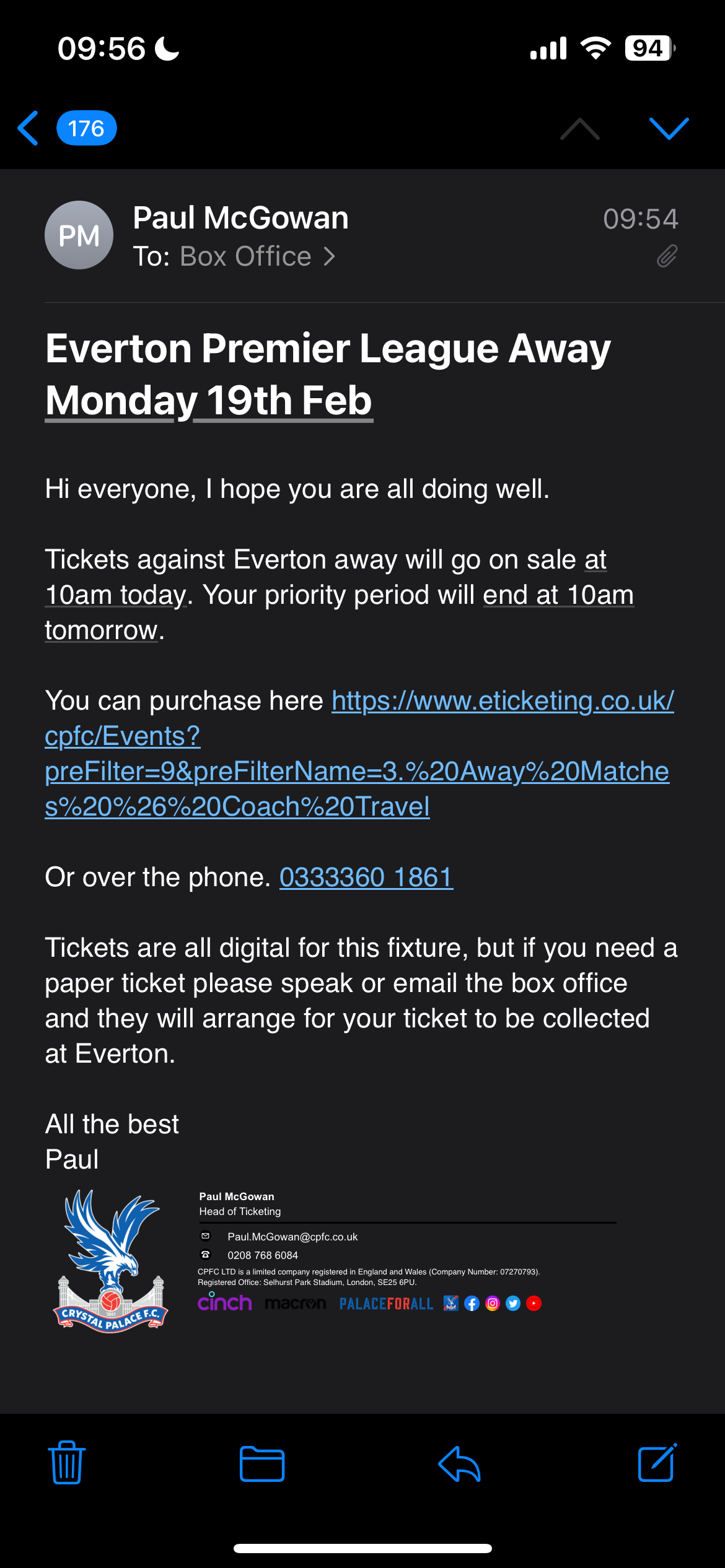 Yeah, my email was sent by the Palace Box Office at 11:57 on Friday.