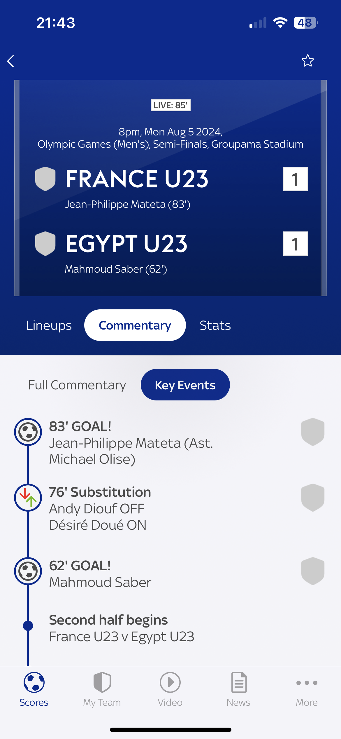 France won, 3-1… two from Mateta and one from Olise.